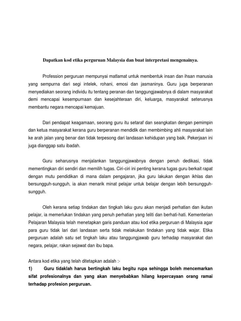 Kod Etika Profesion Perguruan Malaysia Pdf